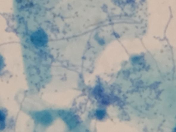 この時の核の染色が濃かったので、白血球が黒っぽく見えます。白血球が少し増えていますので、腟内で炎症が起こっている(腟炎)ことになります。腟炎の原因は何か?ということになりますが、この時依頼された淋菌とクラミジアの検査は陰性でした。